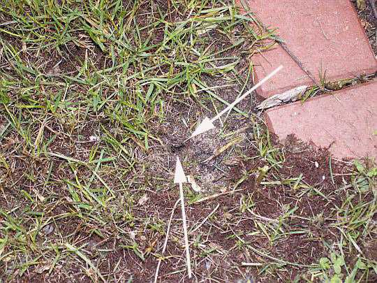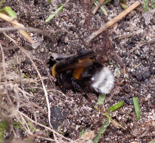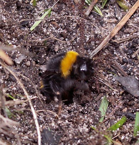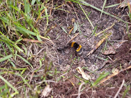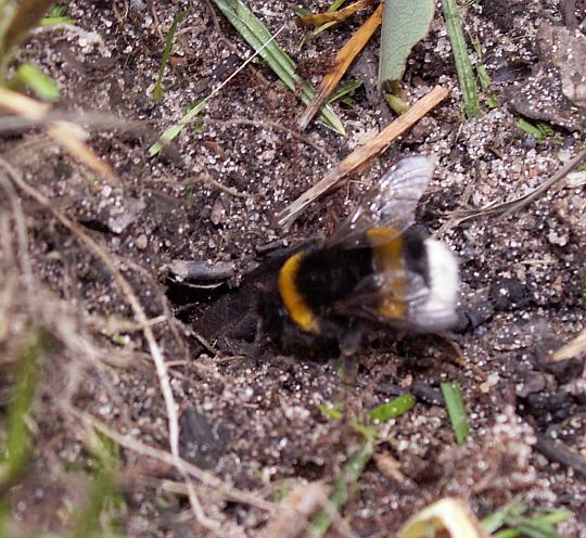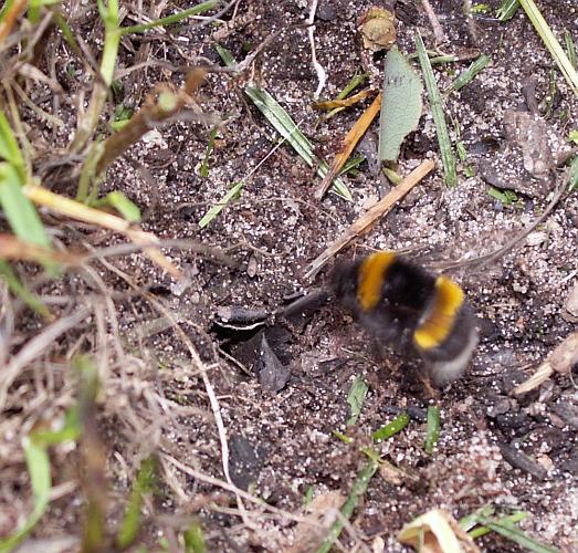 | Osnabrück-Garten-Erdhummelnest Hummeln flogen im 10-Minutentakt rein und raus, wobei der Wechsel nicht immer eins zu eins war. ![]() |