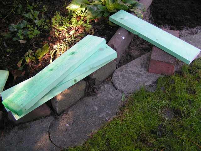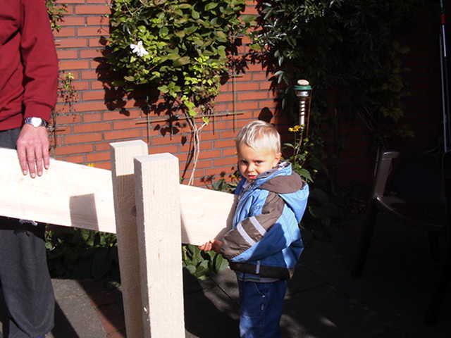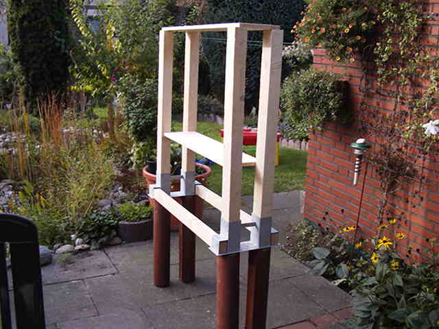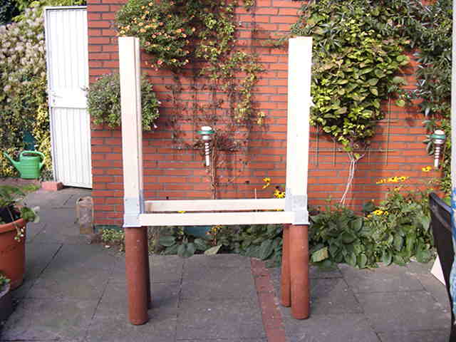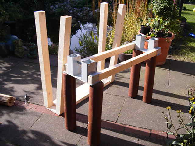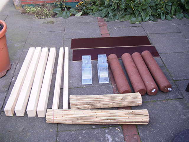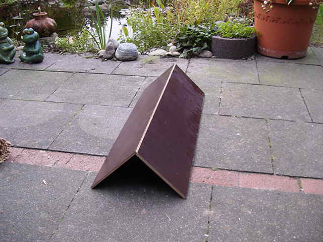 | Zunächst habe ich mir folgende Materialien besorgt: und die 4 Kanthölzer in den Pfosten verschraubt. Der Standort sollte sonnig sein, dabei spielt es keine wesentliche Rolle, ob dies an der Ost-Süd- oder Westseite ist. auf's Dach getackert ![]() ![]()