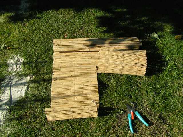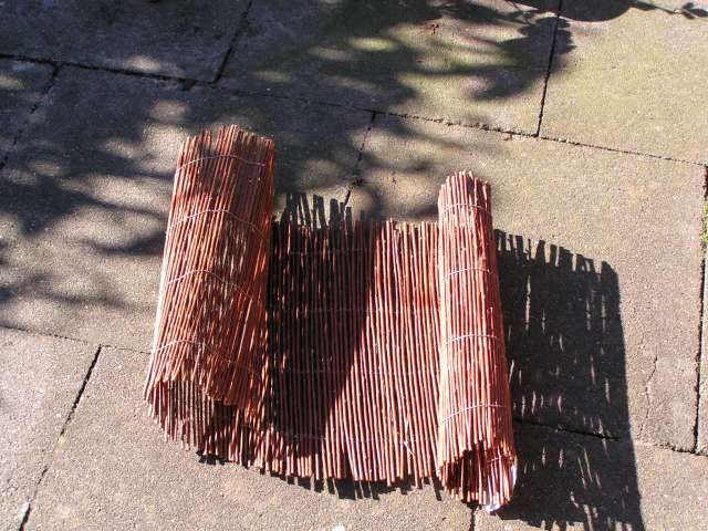 Als Lückenfüller zwischen den Baumscheiben zusammengerollte Strohmatten verwendet (immer auf 30 cm bzw. 25 cm Breite zurechtgeschnitten.