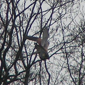| Hier eine Aufnahme vom 28.03.2004, leider nur schlecht zu erkennen (ca. 200 m Entfernung), wie das Weibchen begattet wird | ![]() |