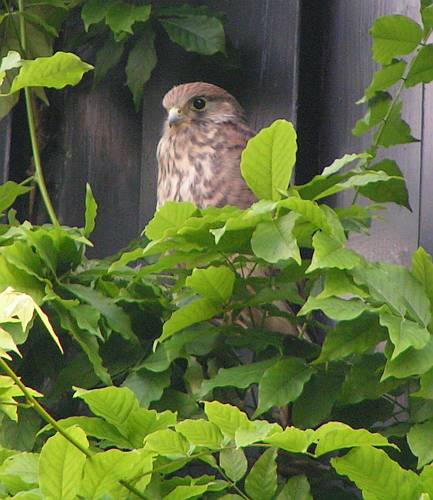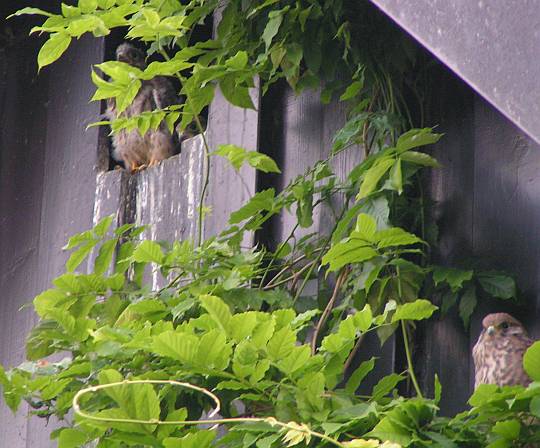 Gestern ist bereits (ohne mein Beisein) ein Junges ausgeflogen. Der nächste sitzt bereits unterhalb der Brutstätte im Blauregen![]() |
