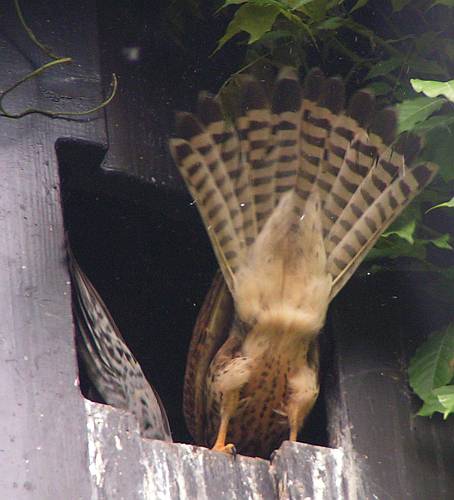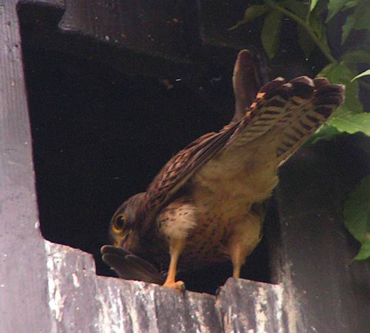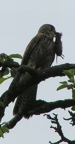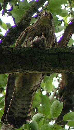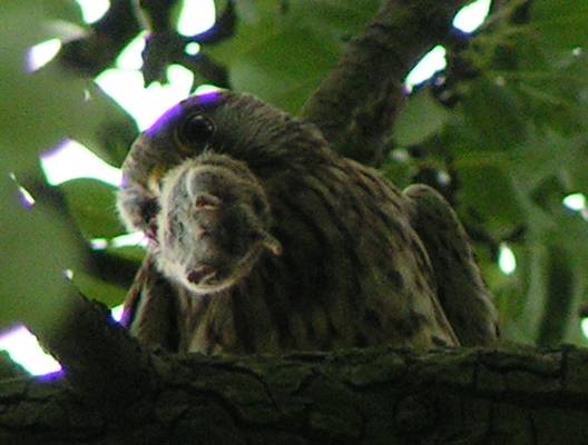 Die größeren Jungvögel sitzen in den Bäumen rund ums Haus. Muttern ist fleissig dabei Mäuse heranzuschaffen